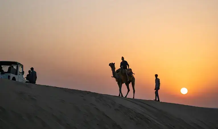 Discover the magic of the Thar Desert with a camel safari in Jaisalmer. Glide across golden dunes atop a gentle camel, taking in breathtaking sunset vistas and serene landscapes. Immerse yourself in local culture with traditional Rajasthani music and cuisine under the starlit sky. This camel safari offers an authentic and unforgettable desert experience.
